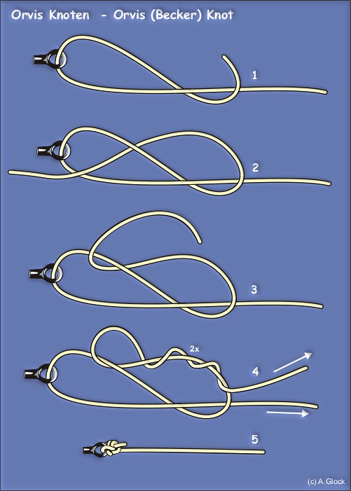leicht zu merken. Natürlich lässt sich der "Orvis" auch an Vorfachringe und Wirbel binden.