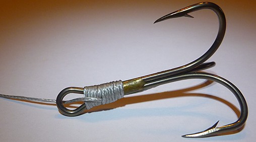 Drillingshaken. Es kann aber ebenso ein Einzelhaken verwendet werden. Ab