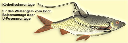 Köderfische, 10 - 15cm Abstand vom Drilling.
