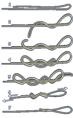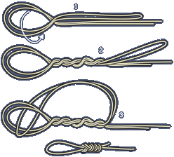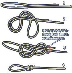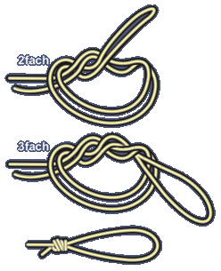 * Schlaufe am Ende einer Schnur zum befestigen der Vorfachschnur an Wirbel und Ringe | ||||||||||||||||||||||||||||